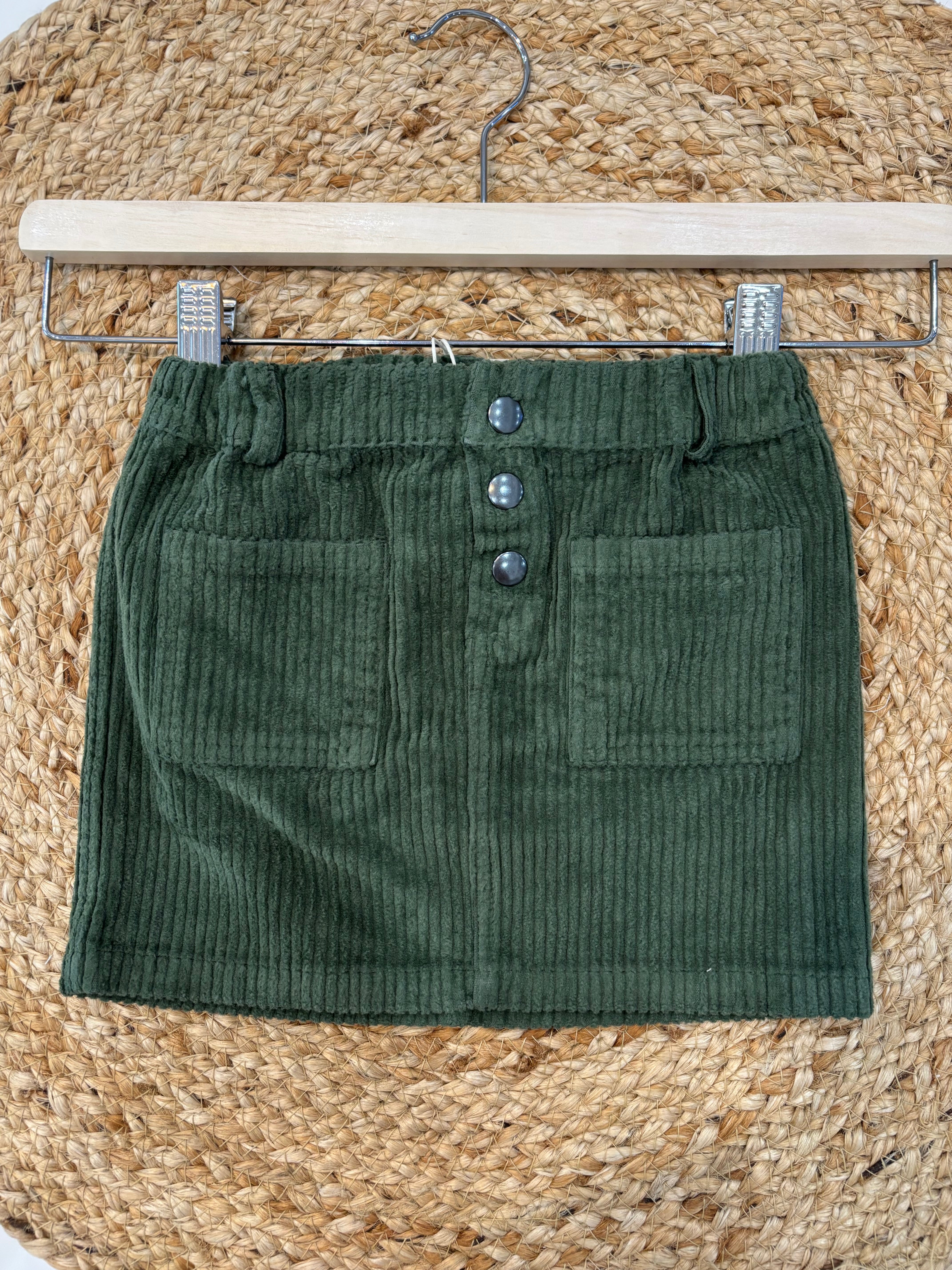 La gonna SCHOOL AND FUN, realizzata in morbido misto cotone, modal ed elastan, ha vita regolabile, apertura frontale con bottoni automatici e due tasche anteriori.