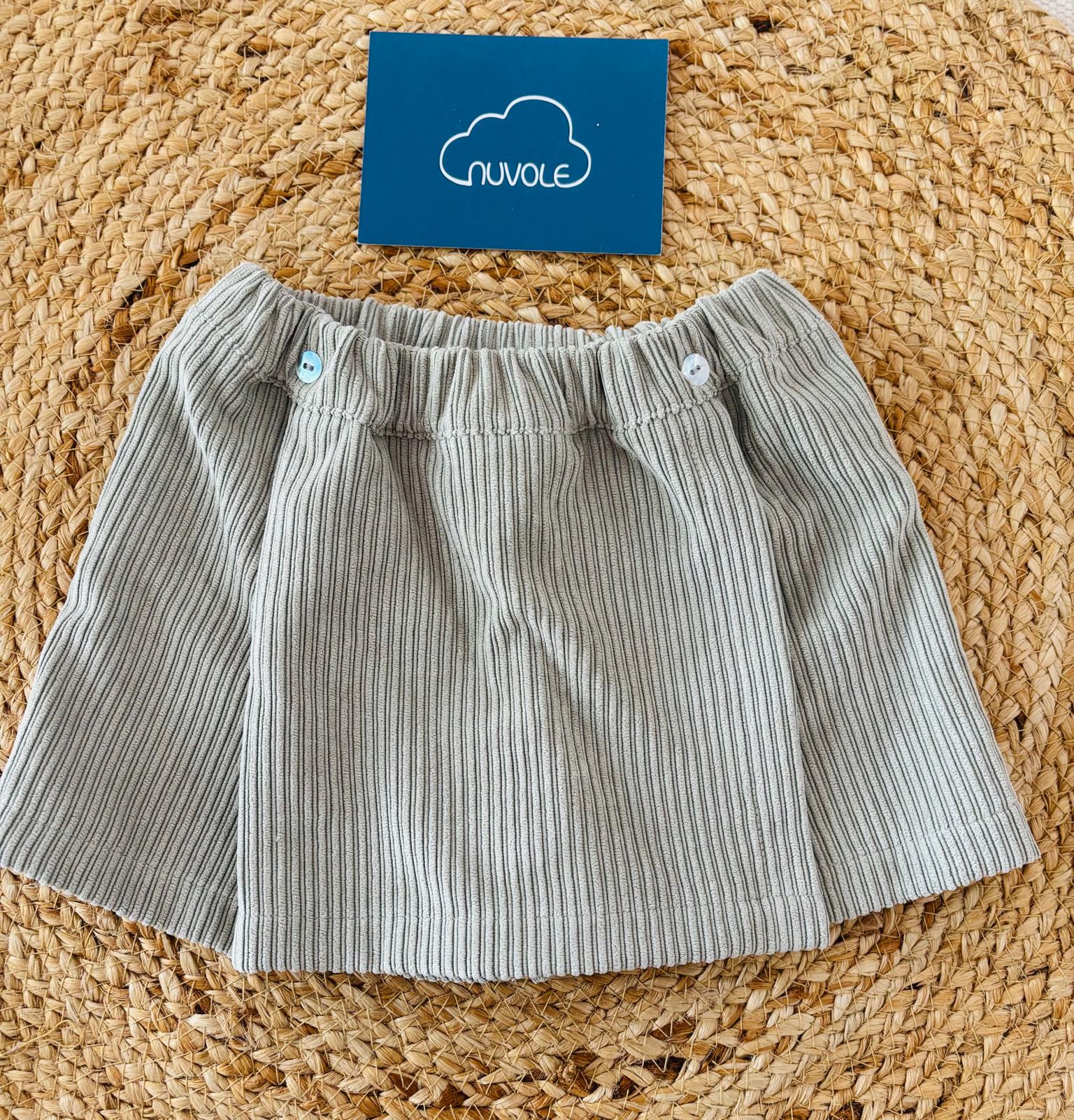 Comodo pantaloncino in felpa denim con pieghe. Elastico regolatore interno per migliorare la vestibilità.