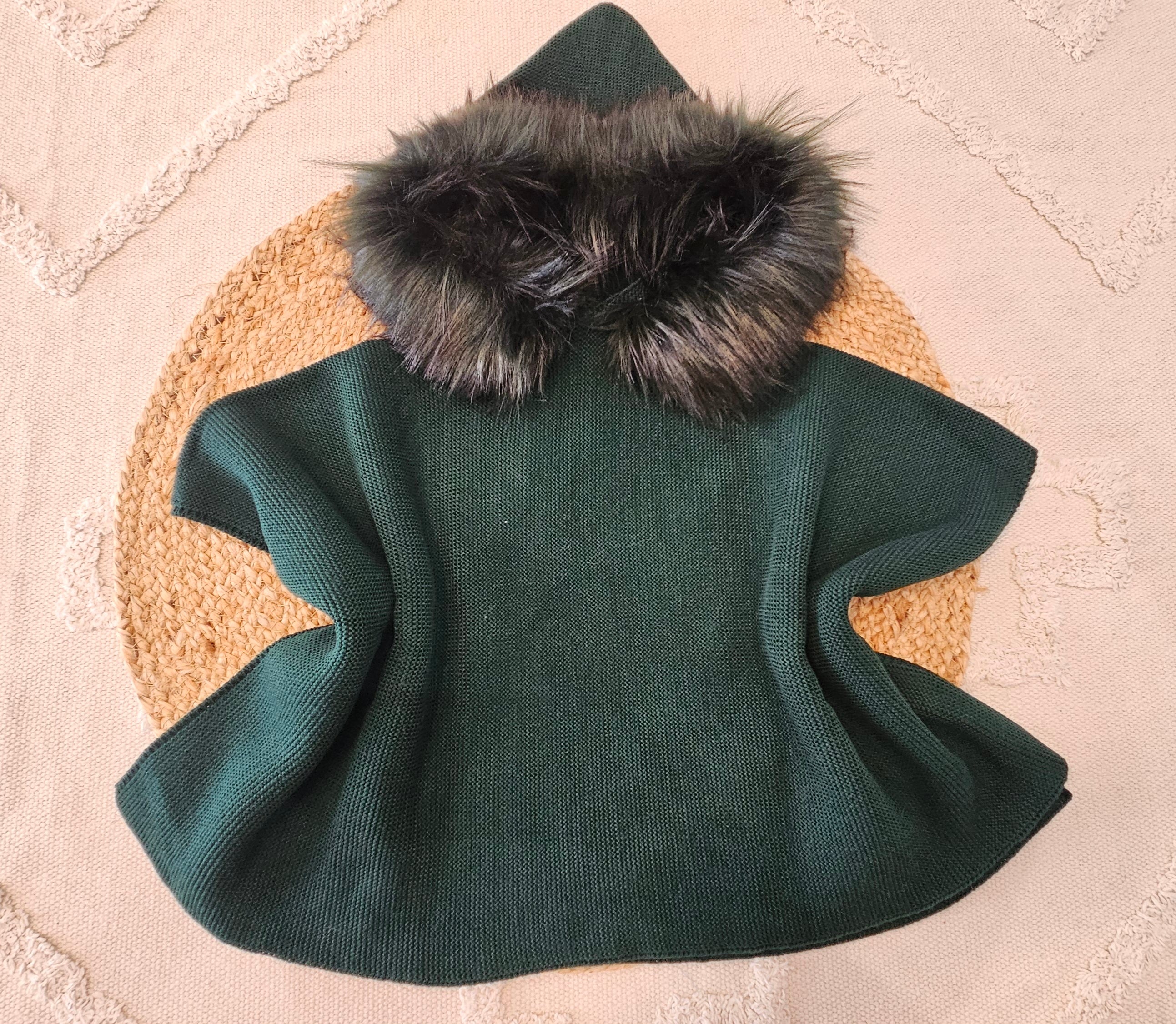 Mantella con cappuccio ed eco-pelliccia staccabile