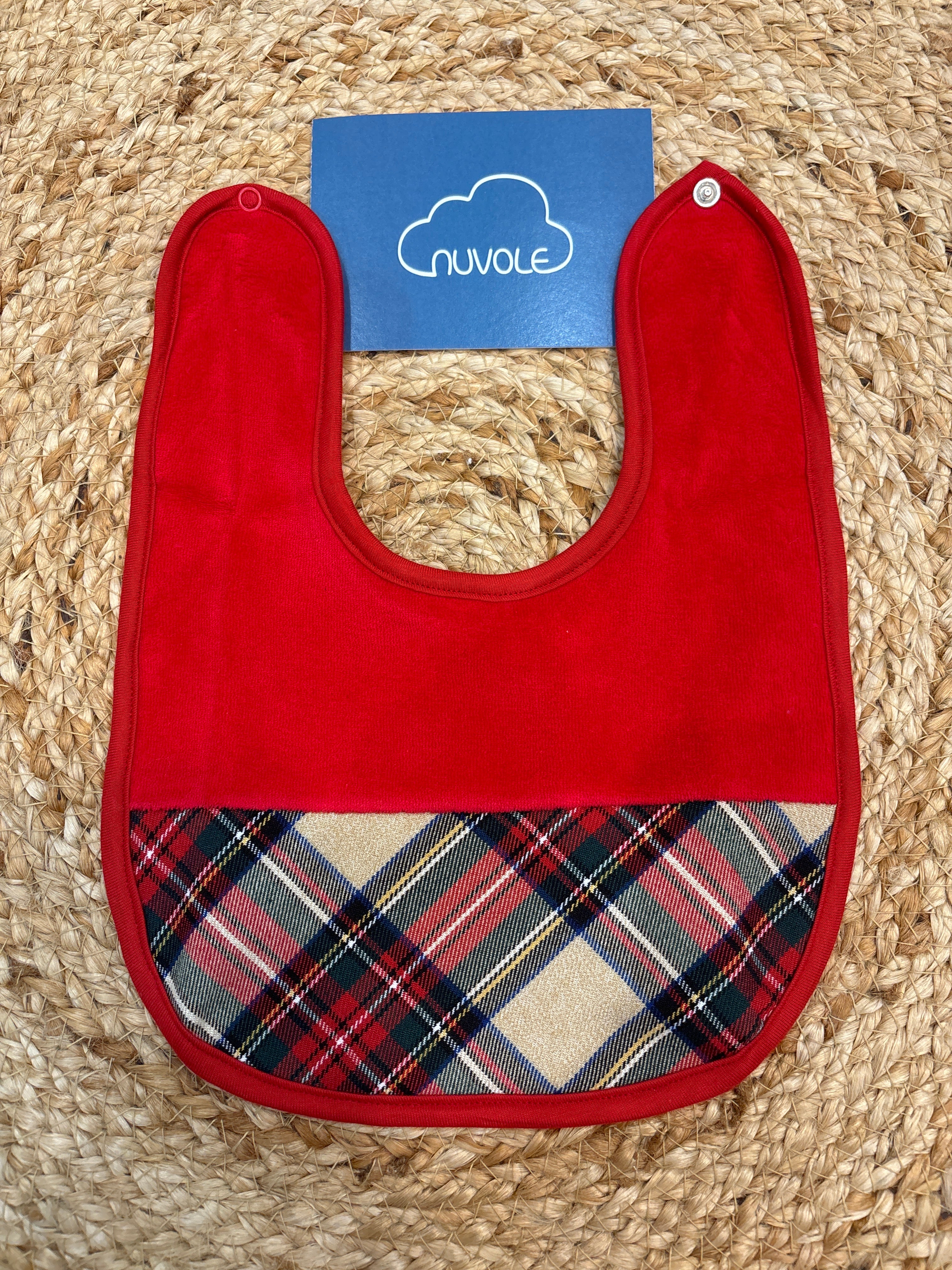 Bavetta in velluto rosso con inserto tartan e nastrino in velluto glitter