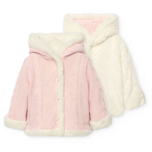 Giacca reversibile per bebè in blu, realizzata in maglia per offrire calore e morbidezza durante le stagioni fredde. Il design reversibile permette di alternare tra uno stile semplice e un altro con dettagli discreti, aumentando la sua versatilità. Include una chiusura frontale con bottoni per facilitare il cambio d'abbigliamento. Ideale da abbinare con pantaloni o salopette. Un'opzione funzionale e stilosa per mantenere il tuo piccolo comodo e al caldo