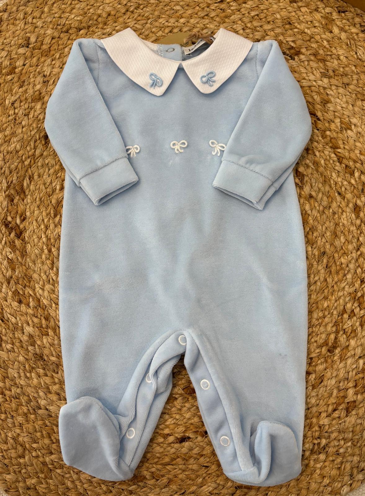 Morbida tutina in ciniglia con abbottonatura e pratica apertura al fondo per il cambio del pannolino
