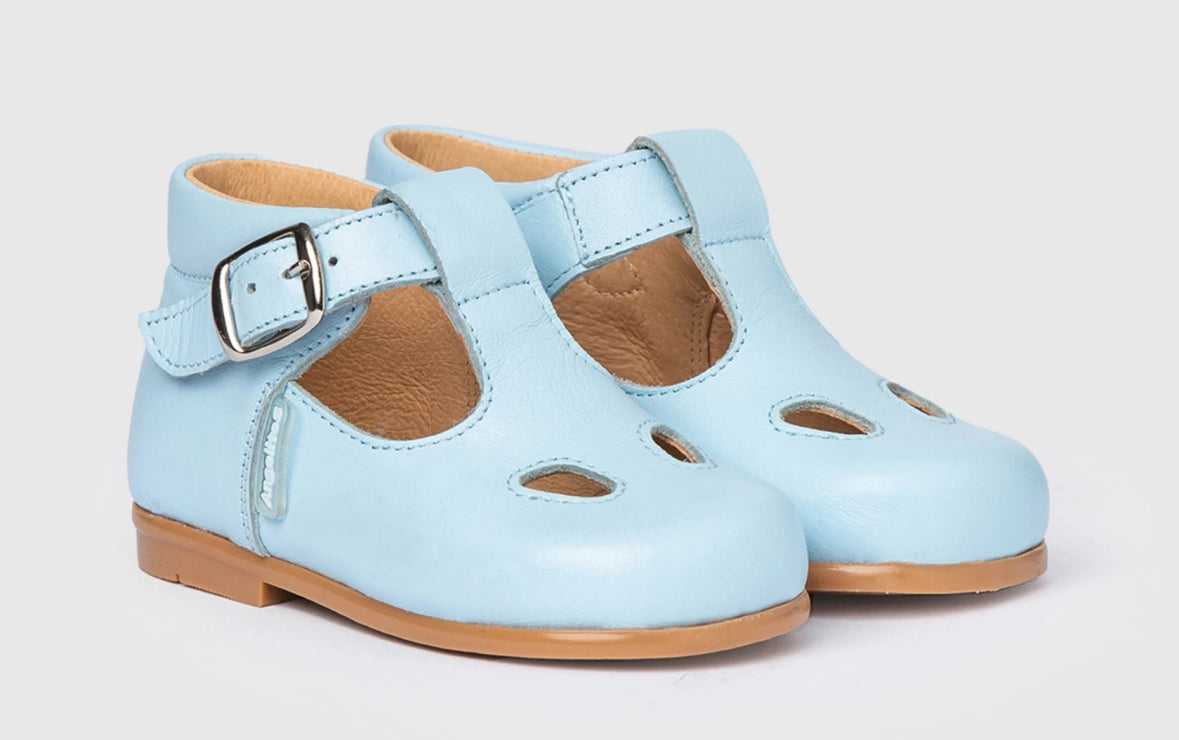 Scarpa primi passi in pelle, modello occhiello con plantare anatomico.