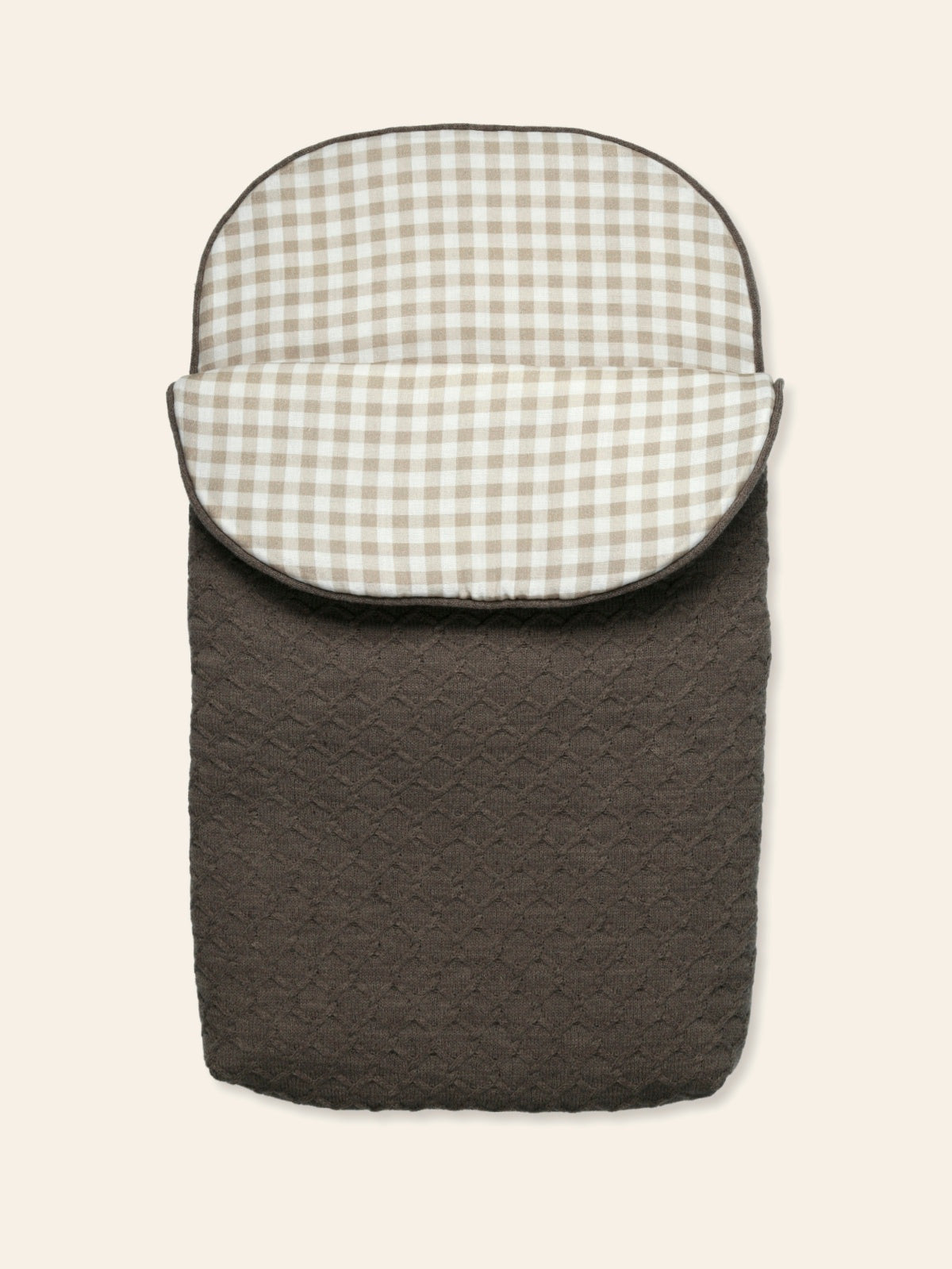 Morbido sacco nanna in lana ed ecopelliccia rasata. Chiusura laterale con zip invisibile