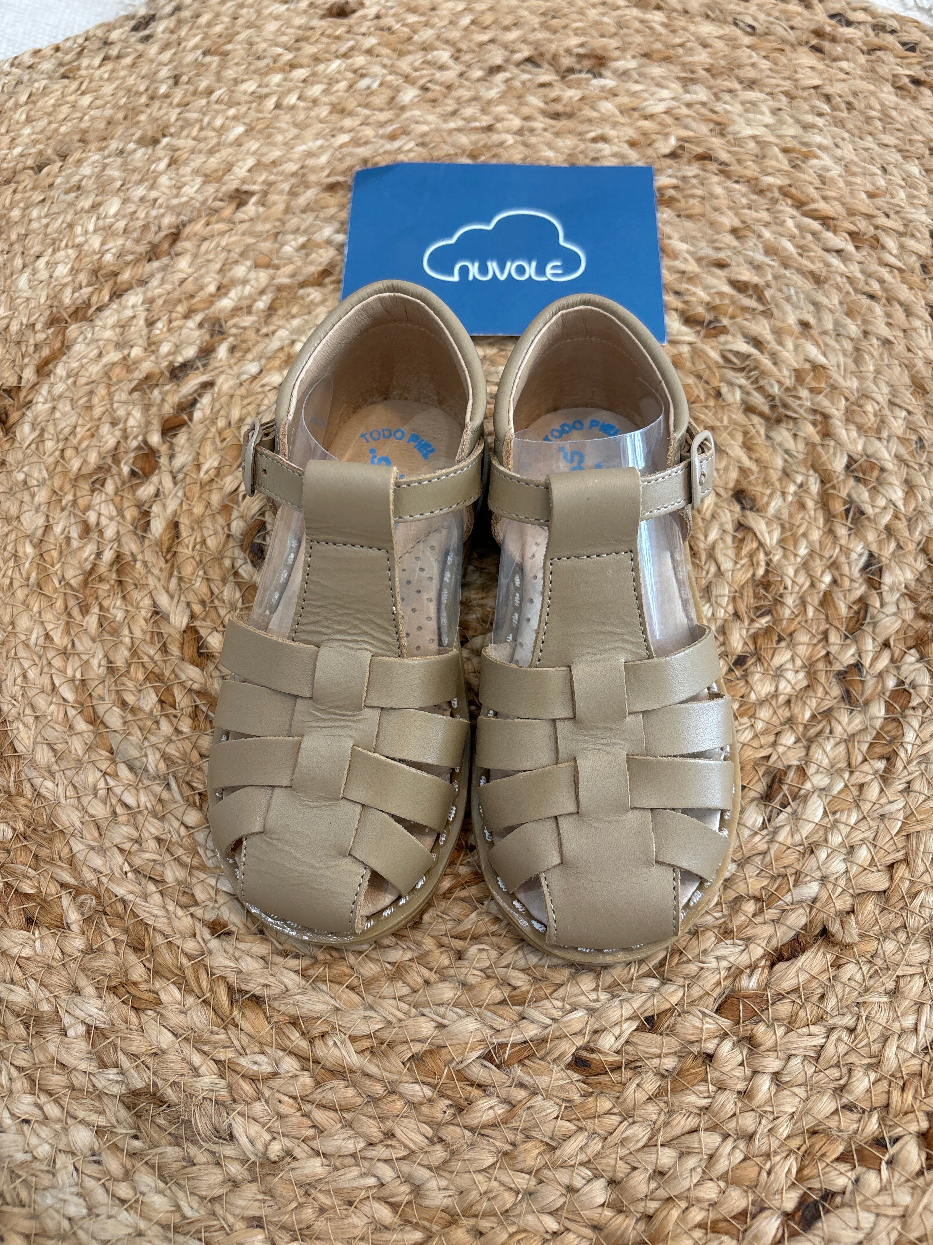 Sandalo in pelle con plantare anatomico e fibbia a contrasto