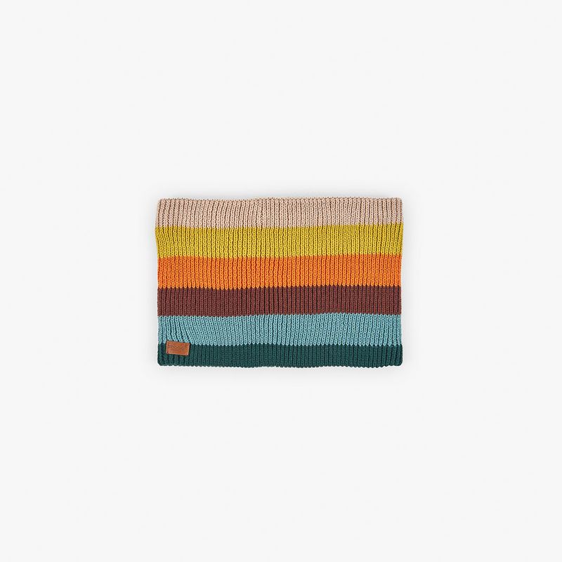 Simpatico scaldacollo in maglia con raffigurazione fiore, perfetto per tenere al caldo i bambini durante i mesi più freddi.