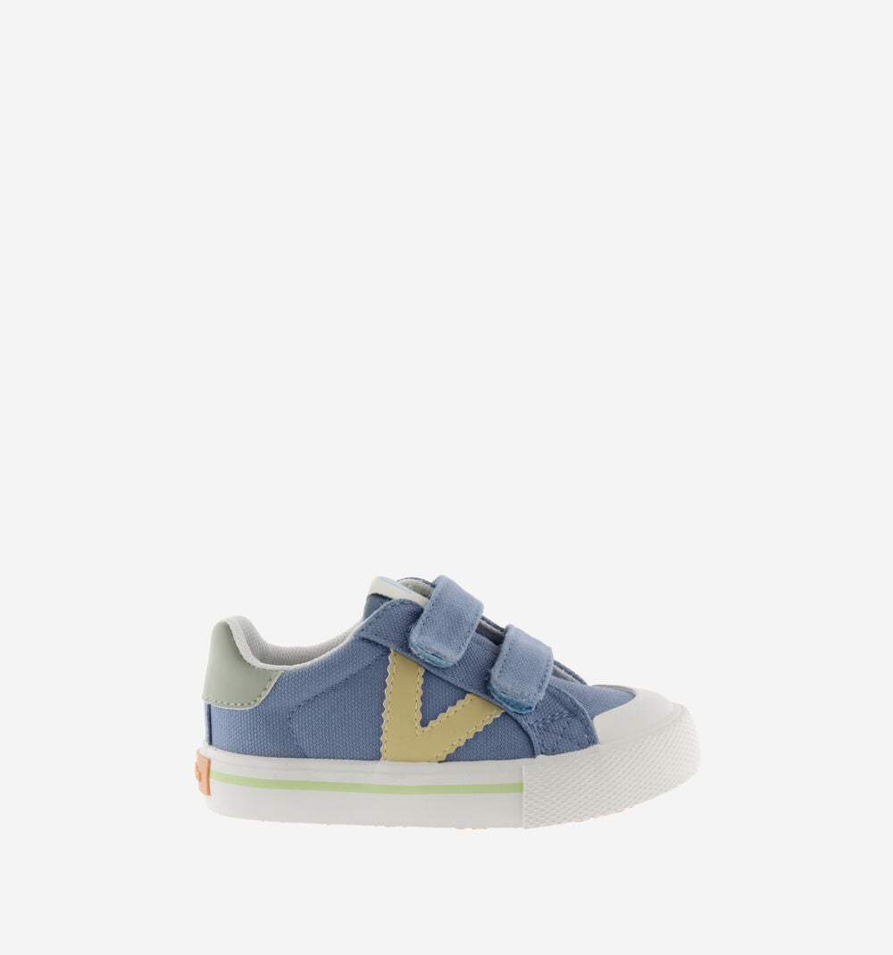 Sneakers sportive per bambini con dettagli neon sul logo, sulla parte posteriore e sulla fodera. Chiusura con due fascette a strappo che garantiscono un miglior sostegno e sono più facile da indossare. Punta in gomma che le rende più resistenti e durevoli e soletta ad alta densità per un maggiore comfort