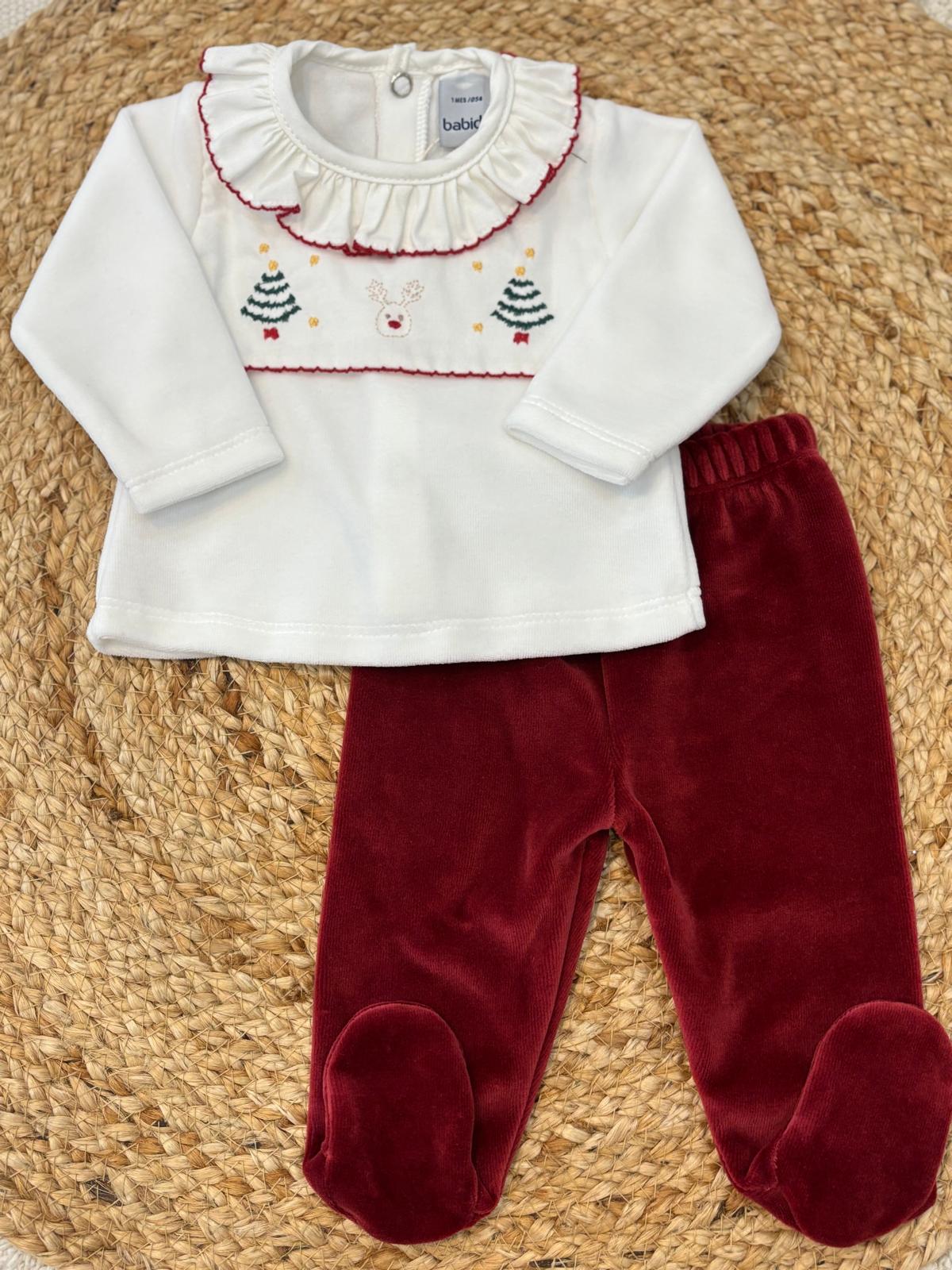 Morbida tutina in ciniglia 2 pezzi con ricamo orsacchiotto sul davanti Pratica apertura con bottoni a clip sul retro.