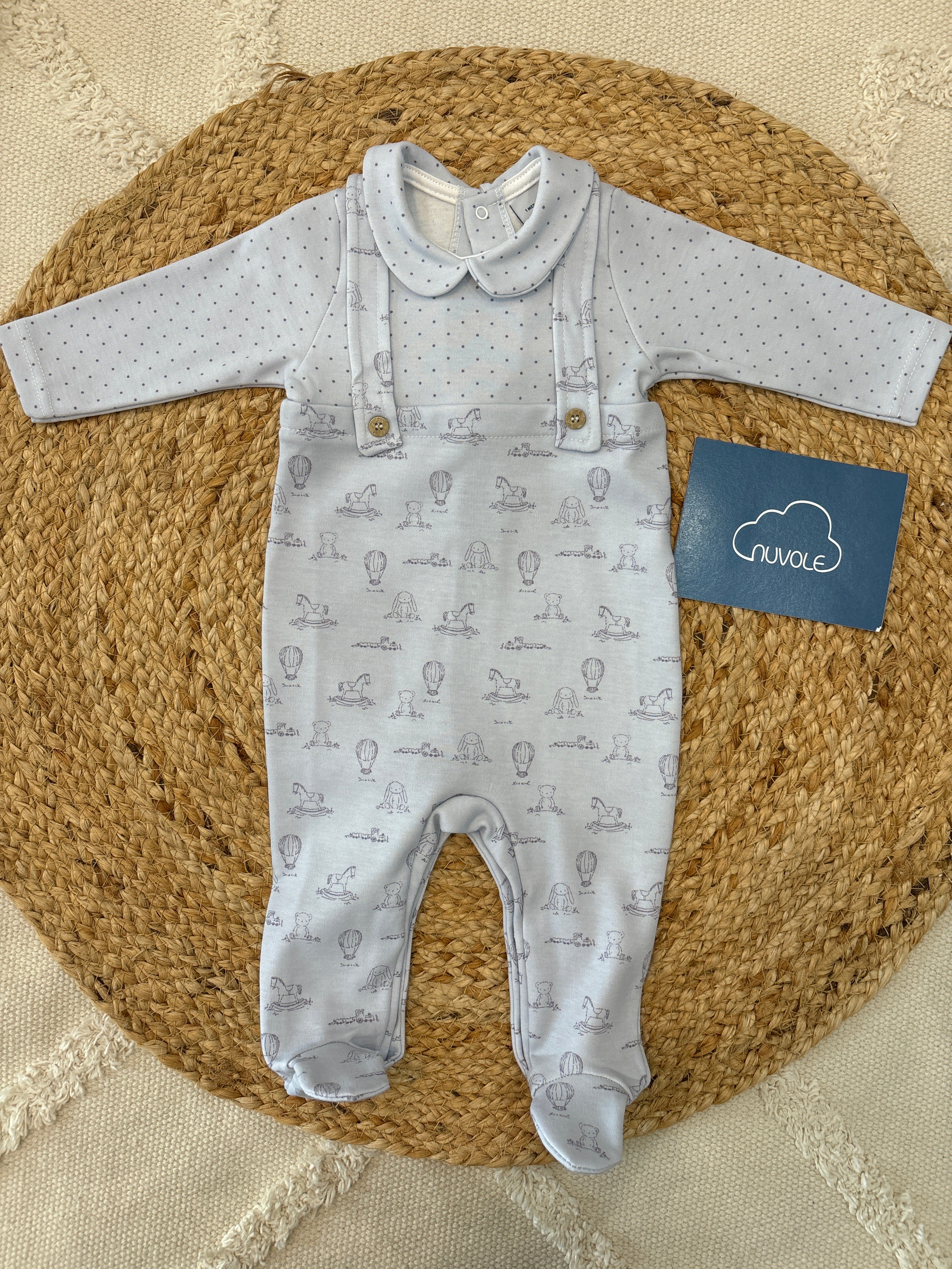 Tutina in caldo cotone con stampa casette e colletto in vichy.