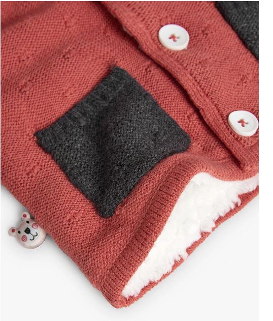 Giacca da neonato lavorata a maglia, ideale per neonati e bambini da 1 mese a 2 anni. È unisex, quindi perfetta sia per le bambine che per i bambini. Il suo tessuto a maglia la rende ideale per l'inverno, per tenere il piccolo al caldo e a suo agio. La giacca è arancione, con un design a tinta unita che la rende facilmente abbinabile. È dotata di un cappuccio foderato che protegge dal freddo e la sua chiusura a bottoni la rende facile da indossare. Le maniche sono lunghe e coprono bene il bambino nelle giornate più fredde.